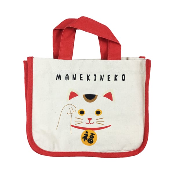 【猫まっしぐらセレクト】 日本の招福モチーフ・猫のかどまるミニトート-招き猫